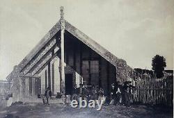 Album of 17 Albumen Studio Photographs of New Zealand, showing Arthur River, Auckland, Wellington, Port Chalmers, Dunedin, Lake Rotorua, Rotorua Sanatorium and Malfroy Geysers, Waiotapu (Rainbow Hill, Sulphur Terrace, White Terrace before 1886 eruption), Mt. Tarawera, Whakarewarewa, Ohinemutu (Tametekapua meeting house), etc. 27.5x36.5 cm or 10 ½ x 14 ¼ in.